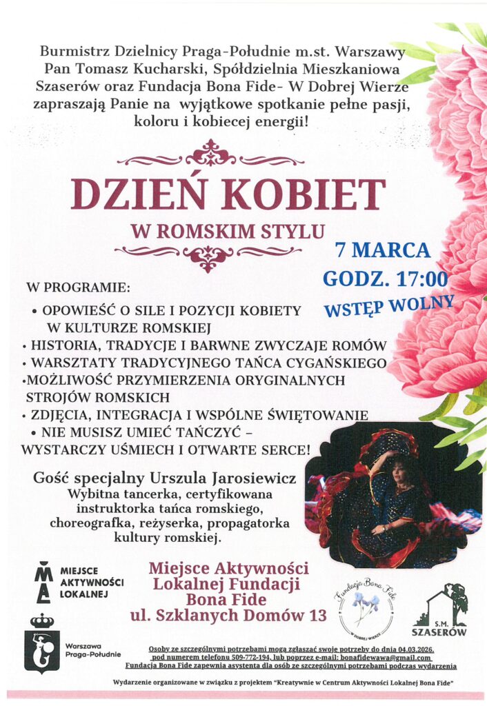 Zapraszamy Panie w dniu 07.03.2026 r. o godz. 17:00 na wyjątkowe spotkanie pełne pasji, koloru i kobiecej energii  “DZIEŃ KOBIET W ROMSKIM STYLU”