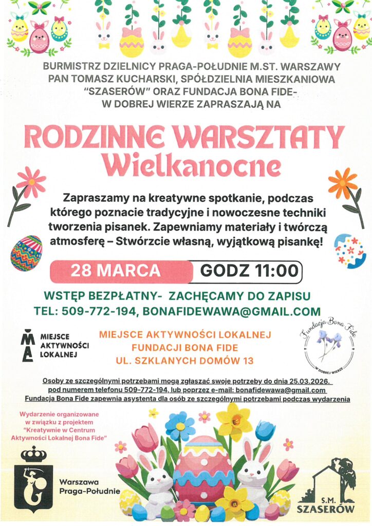Zapraszamy w dniu 28.03.2026 r. o godz. 11:00 na Rodzinne Warsztaty Wielkanocne.