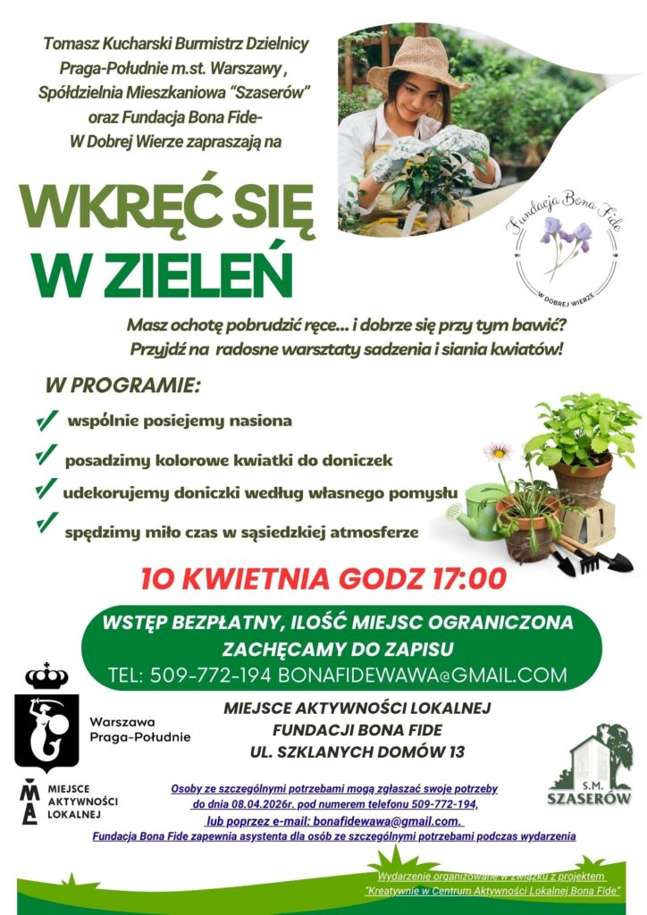 Zapraszamy w dniu 10.04.2026 r. o godz. 17:00 na warsztaty sadzenia i siania kwiatów.