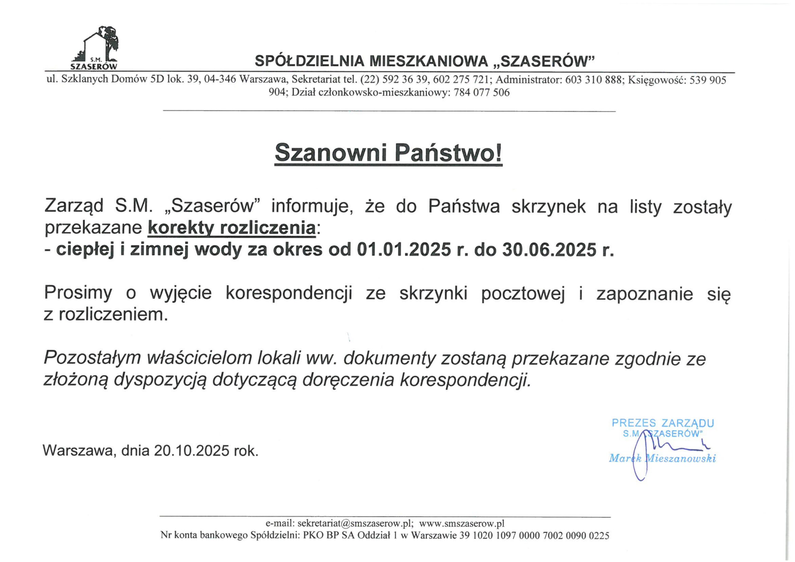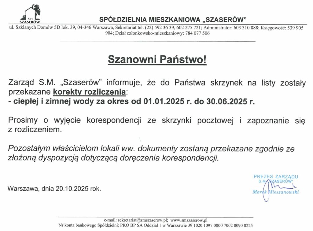 Ogłoszenia Spółdzielni