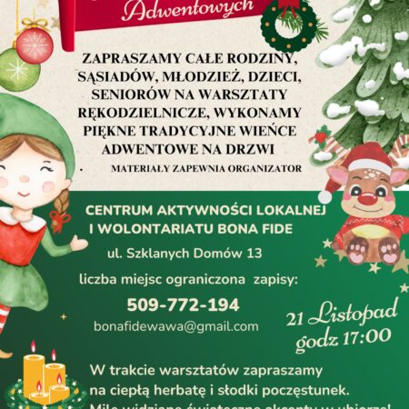 Zapraszamy w dniu 21.11.2025 r. o godz. 17:00 na Rodzinne Warsztaty Tworzenia Wieńców Adwentowych