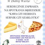 Zapraszamy od pon. do pt. o godz. 14:00 na spotkania sąsiedzkie “Kawa czy herbata, sernik czy szarlotka”.