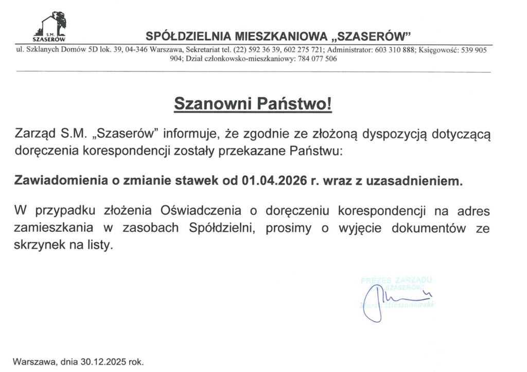 Informujemy, że do Państwa skrzynek na listy zostały...